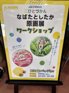 石ノ森萬画館の3階(入場料不要)では、こびとづかんの缶バッチが1つ300円で作れます。